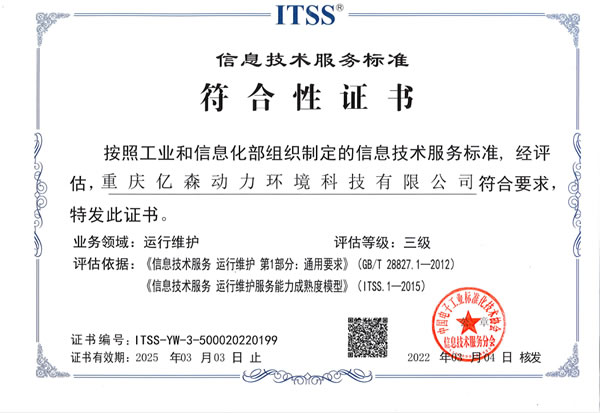不僅如此,除專利外,經(jīng)ITSS協(xié)會(huì)審核確認(rèn),億森動(dòng)力順利取得ITSS三級(jí)認(rèn)證證書,此項(xiàng)認(rèn)證的成功,標(biāo)志著億森動(dòng)力在信息技術(shù)服務(wù)標(biāo)準(zhǔn)和能力上又邁出了堅(jiān)實(shí)的一步。